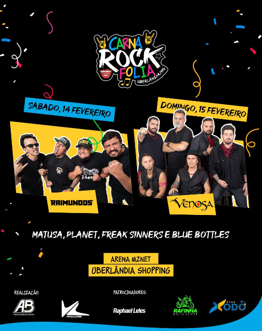 Shows dos Raimundos, Venosa, Matusa, Planet, Freak Sinners e Blue Bottles.