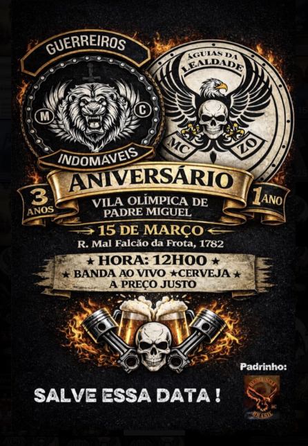 Aniversário dos motoclubes Guerreiros Indomáveis e Águias da lealdade