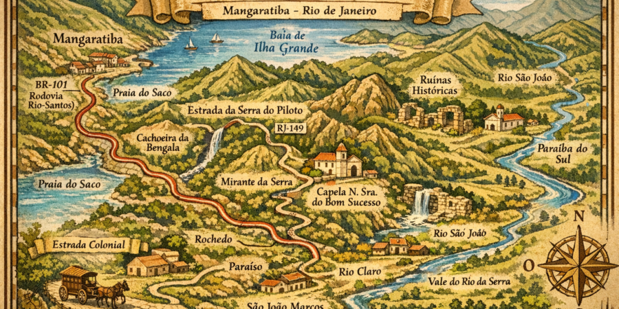 A rota para motociclistas na Estrada Velha de Santos (Caminhos do Mar) é uma jornada cênica e histórica pela Mata Atlântica, conectando o planalto à Baixada Santista, ideal para descer ou subir os 9 km de curvas sinuosas, paradas em monumentos e mirantes, com opções de roteiros guiados por empresas como a Motor Road ou individuais